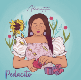 Es en los primeros acordes solemnes de “Pedacito de Corazón” que cobra una vibra totalmente sentida con la enorme emotividad que Alamatita busca entregarnos en este nuevo sencillo. Lleno de metáforas y acciones que en el fondo se perciben pesimistas, se convierten en una herramienta sanadora para la búsqueda de un sentir universal, entregando un momento de reflexión necesaria con el cual buscar el último pálpito.  La producción sonora de esta canción tuvo lugar en un parque de Santiago, logrando capturar el pasar de los pájaros como también el silbido del exterior para después crear una bonita historia en la grabación. Alamatita expresa que “En particular este tema tiene que ver con sentirse difícil de querer, de hacer reservas de tus emociones para después y así no incomodar, sentimiento que se percibe por cada verso con una intención apasionante y al mismo tiempo desgarrador. Además la fecha de estreno representa un bonito recuerdo al coincidir con la fecha de cumpleaños de su abuela. El arte de la portada fue realizado por le ilustradore Medusa Abisal, quien supo plasmar las emociones y las especificaciones de este tema; Los arreglos y guitarras fueron una exploración de Lucas Santis; La producción, master, mezcla  y arreglos de todos los instrumentos fueron de Christian Scholz; Este sencillo está publicado por Sello Pieza Chica. Puedes escuchar este tema en todas las plataformas disponibles.